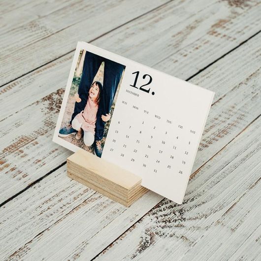 This is an original calendar that, besides functional, it will decorate any desk. The sheet set, one for each month, can be personalized with different photos. With several sizes available, the sheets are fixed in an elegant light wood block.